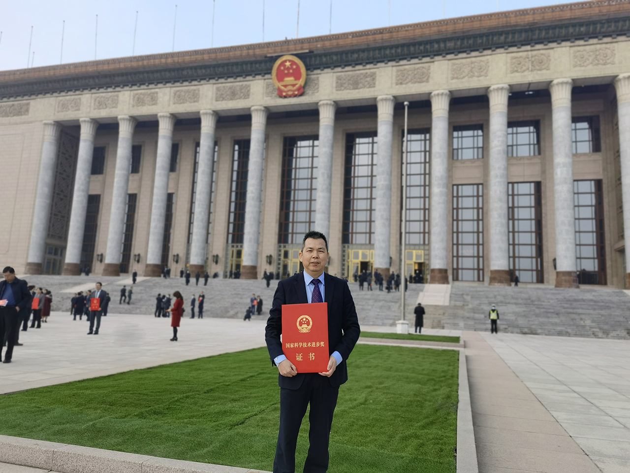 11月3日,浙江上洋機械股份有限公司總經(jīng)理黃劍虹手捧獲獎證書在北京人民大會堂門口拍照留影——公司與安徽農(nóng)業(yè)大學等單位聯(lián)合申報的《綠茶自動化加工與數(shù)字化品控關鍵技術裝備及應用》獲得國家科學技術進步獎二等獎!