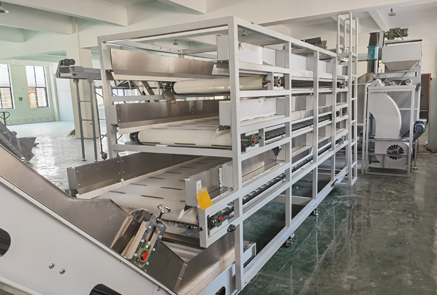 核心優(yōu)點(diǎn):走水均勻,降低茶葉破損率,可增設(shè)空調(diào)通過改變環(huán)境條件加速回潮,便于下道炒干做型工序加工,整機(jī)回潮時(shí)間40-120分鐘可調(diào),是茶葉連續(xù)化加工的必備工序。